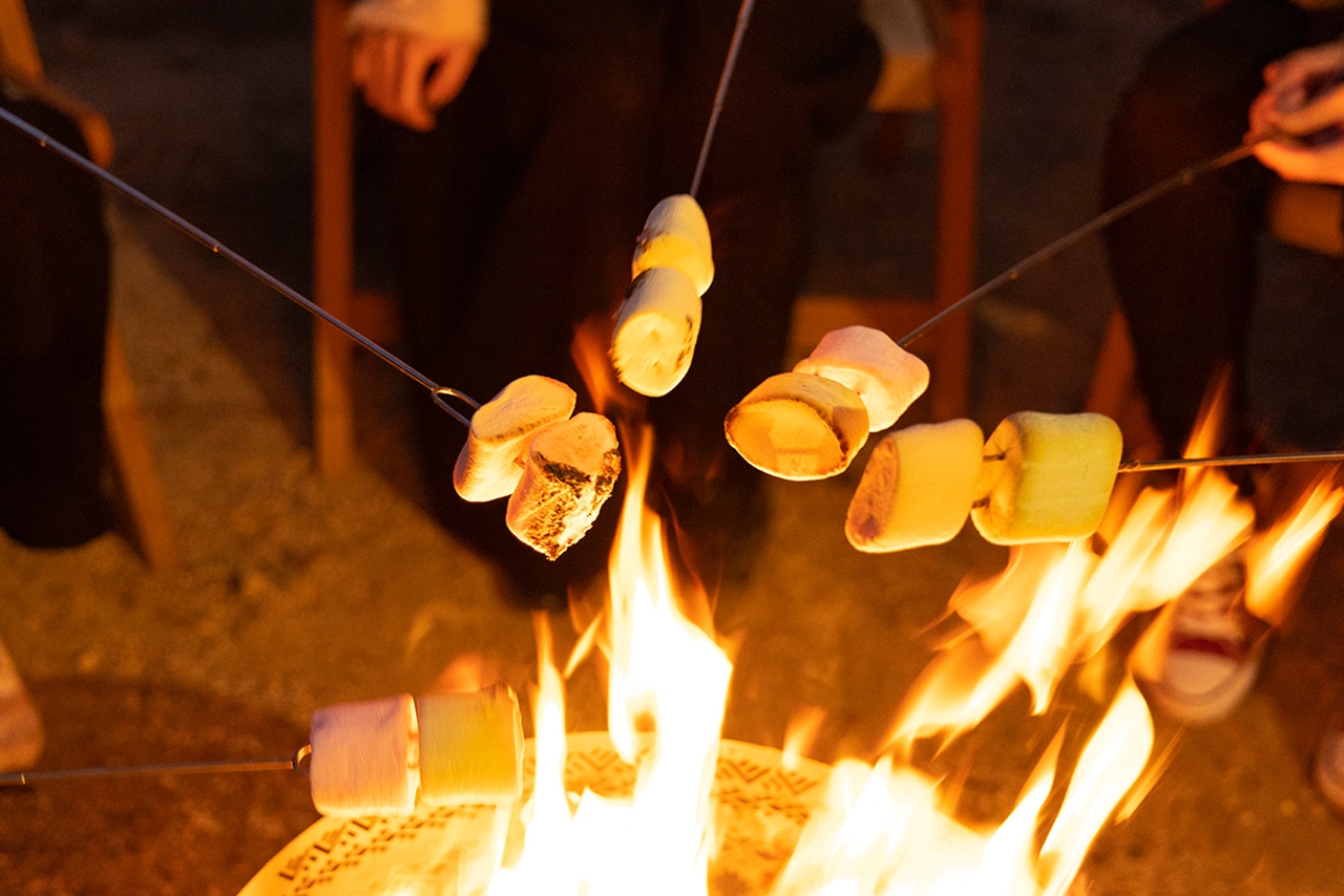 ※焚火台&マシュマロフォークは全棟に完備しています。※ビッグマシュマロは自販機(200円)でお買い求め頂けます。